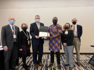 The committee also presented a Special Appreciation Award to Angus Ozoka. Mr. Angus Ozoka was unable to attend the annual meeting and his son accepted the award on his behalf. Mr. Ozoka is pictured below with the nominating committee.
